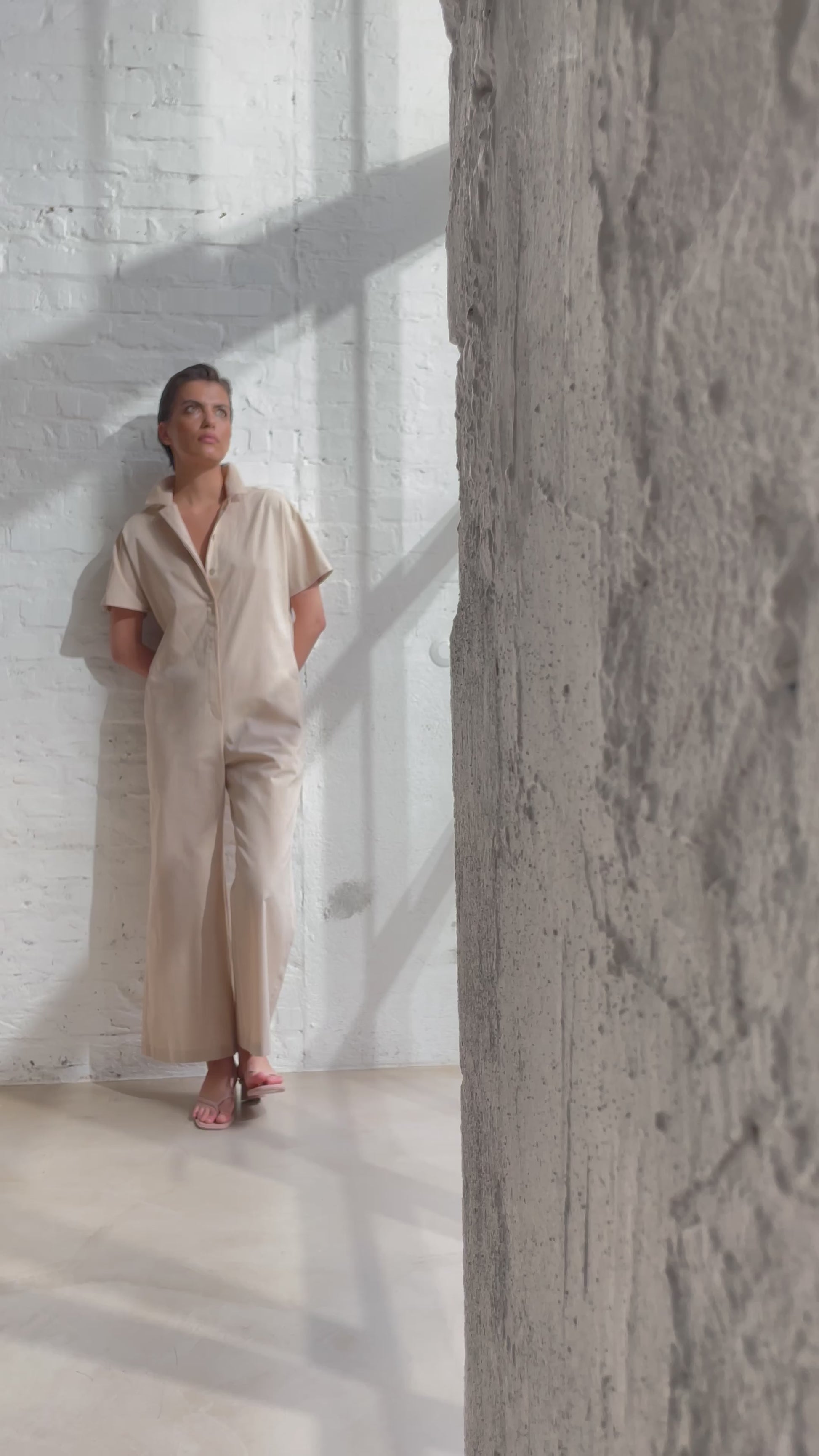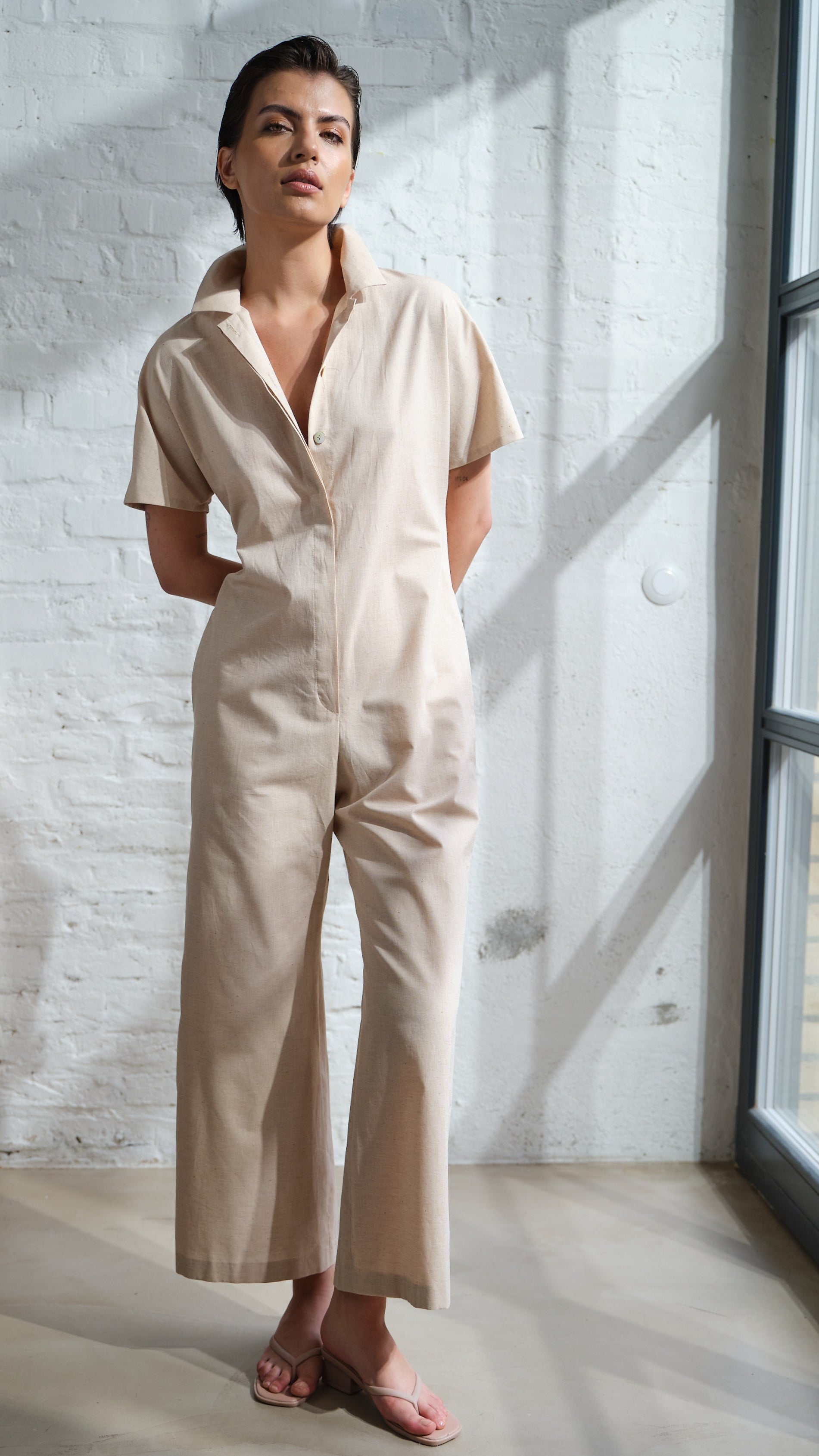 The goes everywhere jumpsuit made from organic cotton melange. Timeless ease for every suitcase.